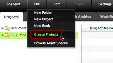 Click 'File > Create Projects'
