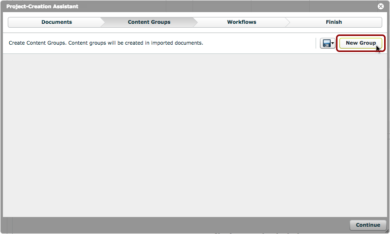 In this step, we are going to set up any require content groups. Please keep in mind that any content groups set up here will be present in ALL of the imported documents.