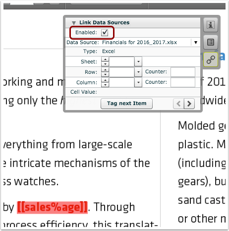 Linking segments to cells in Excel files