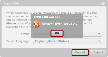 Error (ID: 13149) - Unknown error – Export Translation File