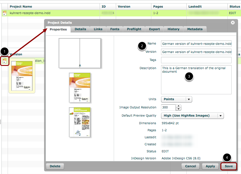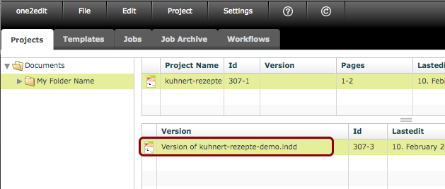 A one2edit™ project typically contains a 'Master' document and one or more 'Version' documents.