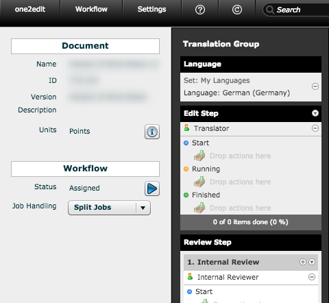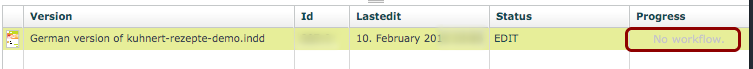 When a version document is manually created, the progress column will show 'No workflow'. This is because no workflow has been assigned to, or created for, this document.