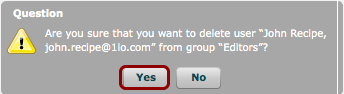 Confirm your decision to delete the user from the group by clicking 'Yes'.