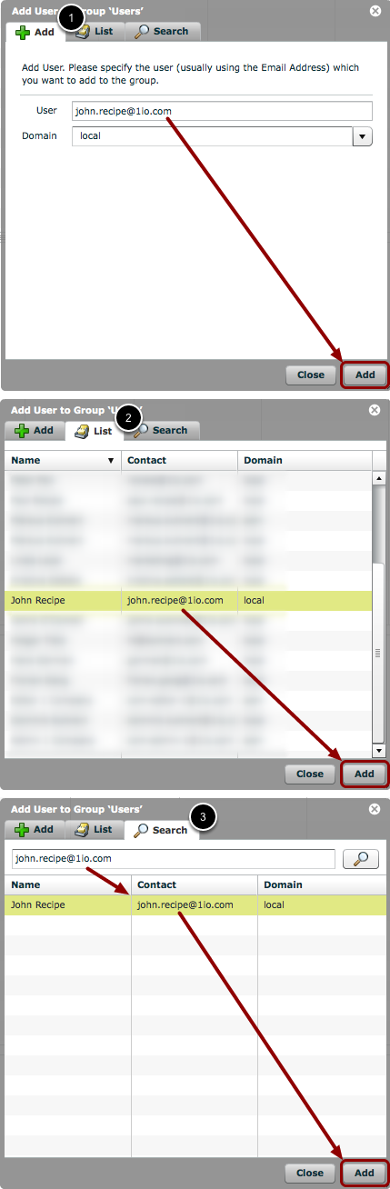 3. Search for the user in the 'Search' tab and click the 'Add' button.