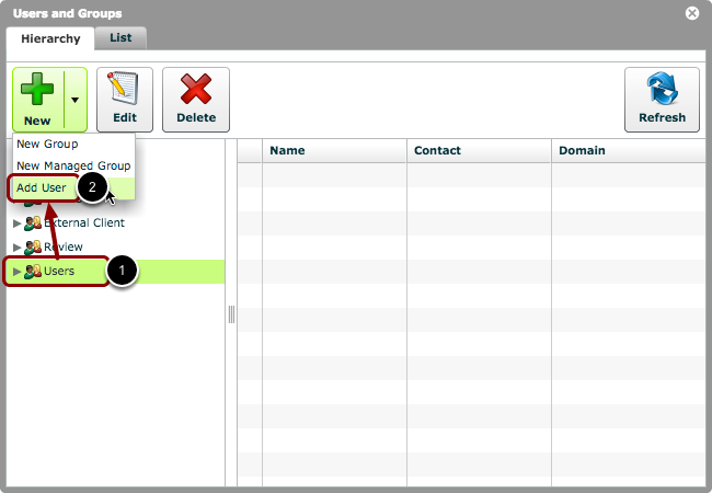 2. Click 'New > Add User' to open the 'Add User to Group...' window.