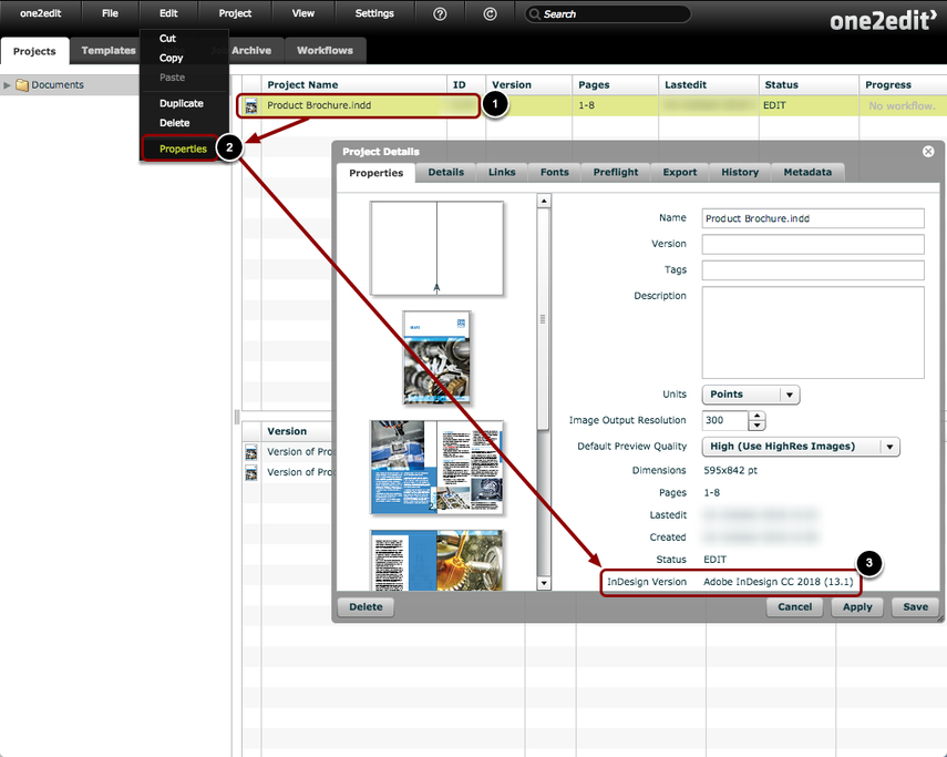 Because one2edit™ works directly with the InDesign INDD file (not IDML files), and because Adobe® InDesign® does not allow users to "Save As..." to a previous version of InDesign, it is important to check that you have the correct version of InDesign installed locally on your computer to allow you to edit this file offline.