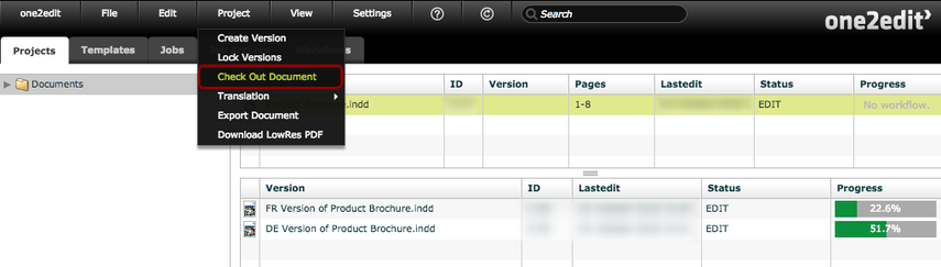 Even when a project is in-progress, you can still make changes to the master document (which can then be rolled out to all of the version documents). For example, if you wish to edit the layout or design of the documents, you can check out the document, edit it in Adobe® InDesign®, and then check the updated document back in to one2edit™.